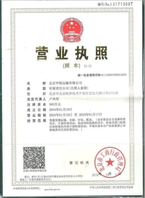 北京華銘運(yùn)輸有限公司,于2004年經(jīng)北京市工商局批準(zhǔn)注冊(cè)的有限責(zé)任公司(自然人獨(dú)資),注冊(cè)資金4560萬(wàn),總部位于北京,服務(wù)范圍遍及中國(guó)大陸地區(qū),核心業(yè)務(wù)包括物流運(yùn)輸,倉(cāng)儲(chǔ),包裝及供應(yīng)鏈解決方案,為各行業(yè)、各類型商品、輔助品、半成品及原材料提供高品質(zhì)的專業(yè)物流服務(wù)。